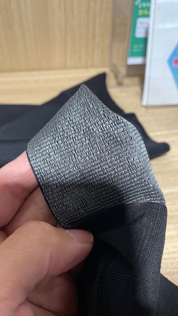 ズレ防止のテープはできる限り薄く、幅を持たせることで効果と着用感を高めています。