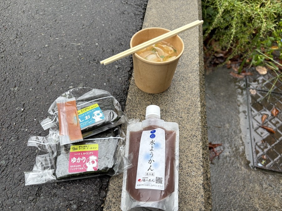 エイドの豚汁とおにぎり、水羊羹が美味しかったです。固形の羊羹を補給食にというのは、コンビニなどでの入手の良さからよく聞きますが、水ようかんも良い感じです。ただ、こちらはなかなか売ってませんが。