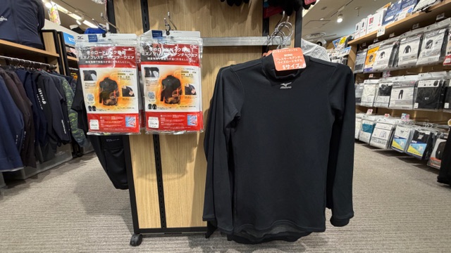 寒さに備えるアクセサリとして人気を博しているMIZUNOのブレスサーモシリーズをひとまとめにしたコーナーを設置しました!
