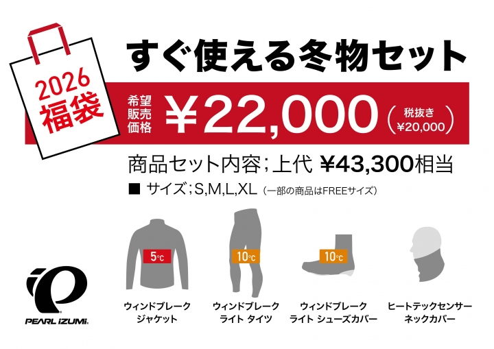安心と信頼のサイクルウェアブランドパールイズミからも超絶お得な福袋をご用意致しました。