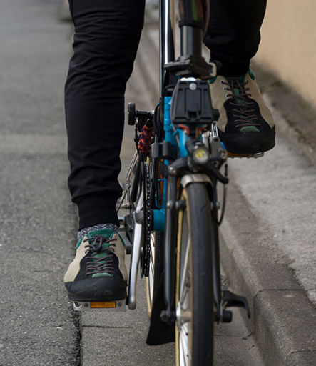 ジョガーパンツ形状を採用しているため裾がバタつかずチェーンへの巻き込みを防止し、SPDタイプのペダルからフラットペダルでの街乗りまで幅広く使えます。ストレッチ性が高く、膝の曲げ伸ばしがスムーズなため長時間のライドでもストレスを感じにくい設計です。いかにもサイクルウェアという見た目ではなく街中でも自然に着用できるため、観光を兼ねたツーリングやカフェライドなどに最適です。自転車から降りた後もそのまま行動できるため着替えの手間が省け冬のお出かけがより快適になります。