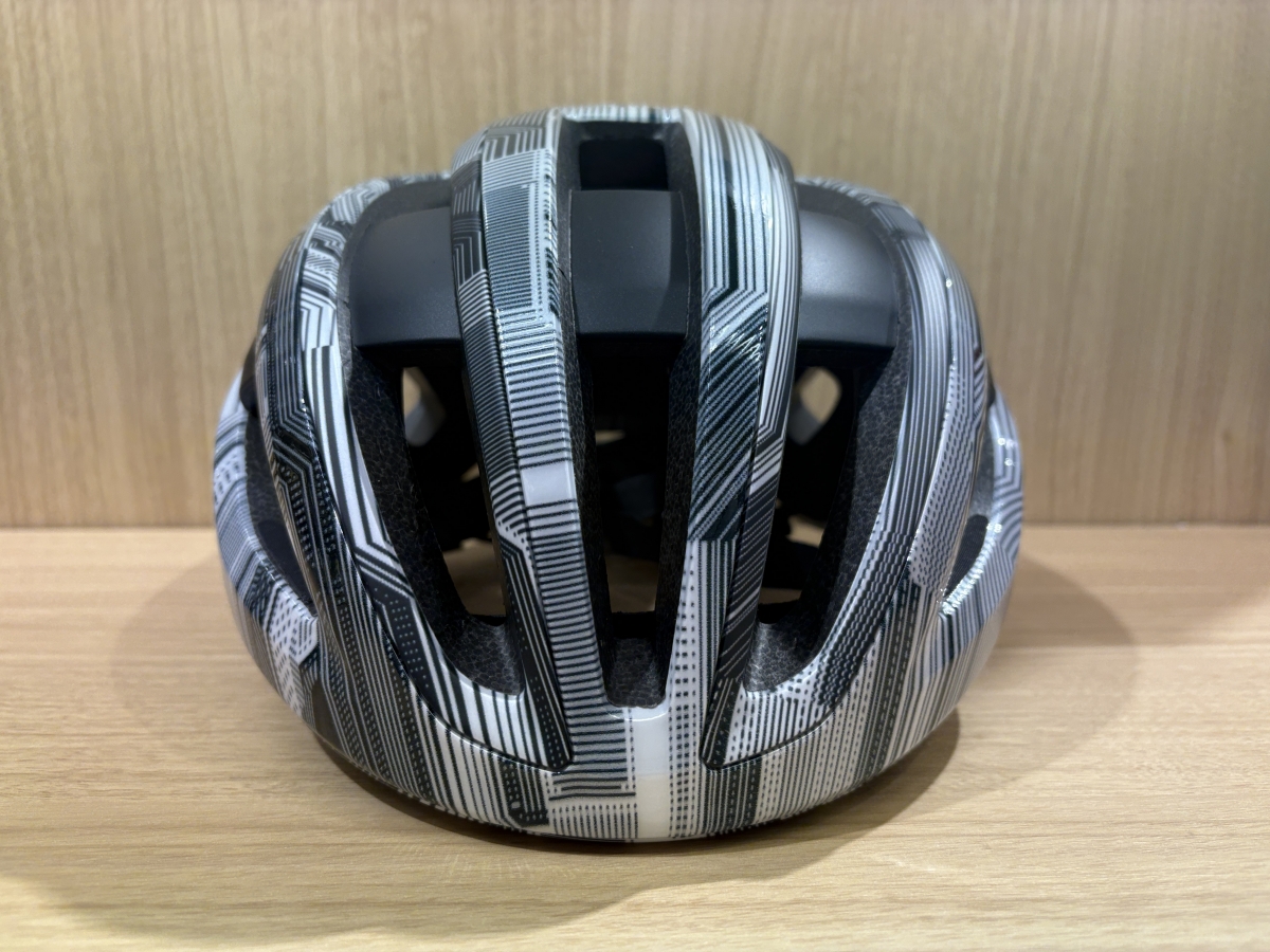 よく見るとかなりエアベンチレーションが大きくて多く、ヘルメット内を気持ちよく風が通ります。もちろん、蒸れにくいですしその分軽量。それでも強度は失われてはいませんので、頭をしっかりと守ってくれます。