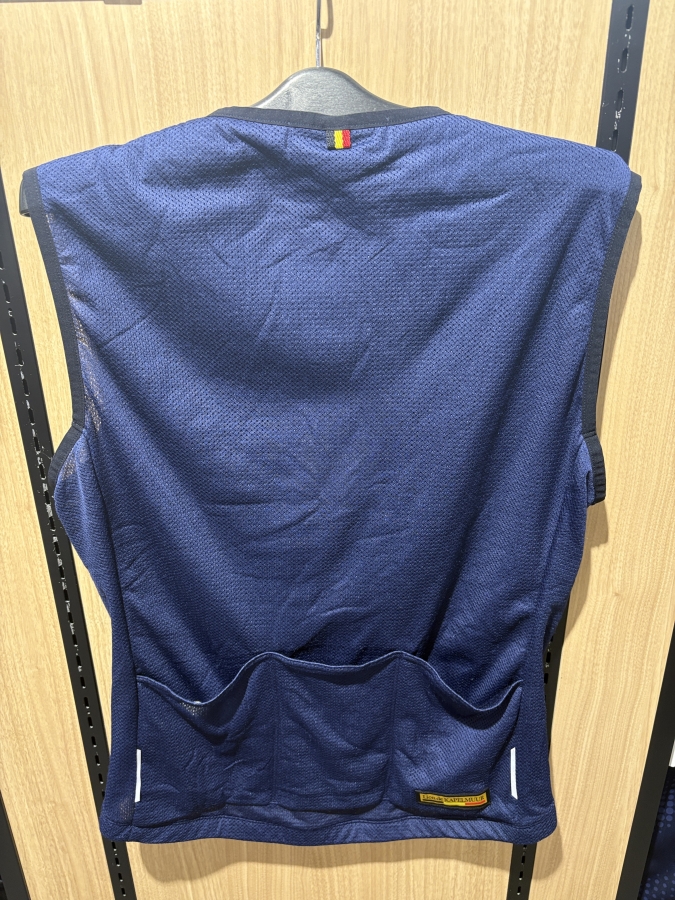 ベスト、ジャージとはなっていますがあくまでミドルレイヤーとして設計されています。防風ジャケットやジャージに重ね着しても動きやすさを阻害しないよう、襟などはありません。暑すぎる場合は前面を開ける事ができるようになっています。