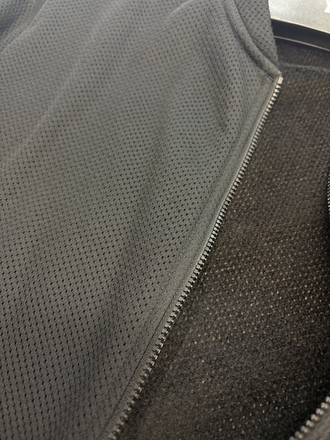 裏は起毛、表はメッシュという異なる性質の素材を組み合わせ。ふわりとした起毛部分が多くの空気を含み高い保温性を生み出しています。そのうえで、汗が通りやすい構造になっているので、アンダーウェアからトップスへの汗はけを邪魔しません。通気性も良いので蒸れも軽減されていますよ。