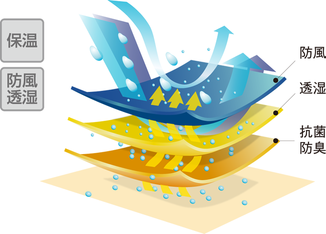 薄手防風透湿素材「ウィンドブレークライト」を帽子本体に採用。冷たい風から頭を守ります。