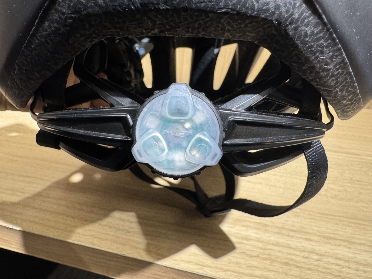 サイズを調整するアジャスターのダイヤル部分にライトを標準装備!