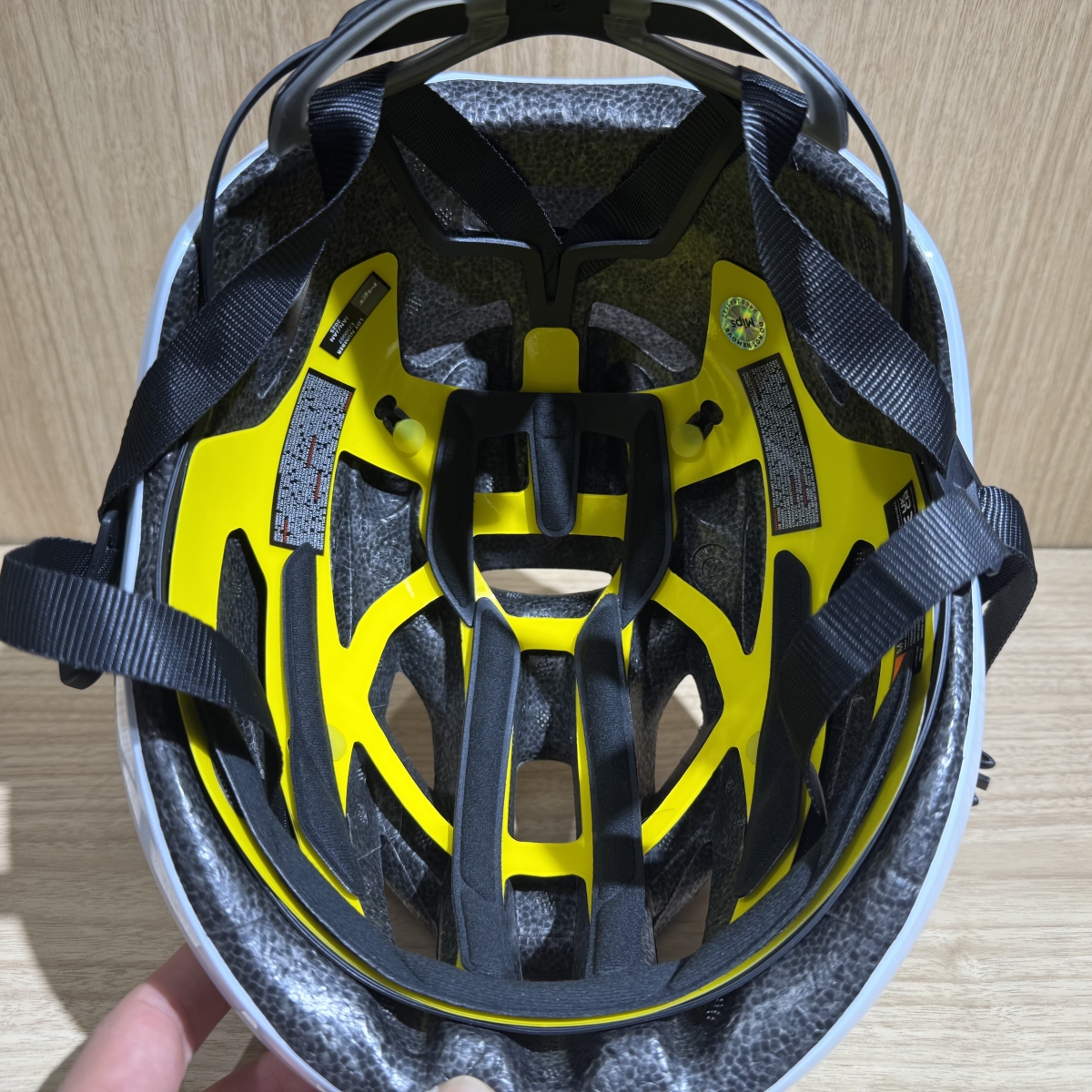 ヘルメット内部の黄色いレイヤーがその正体。