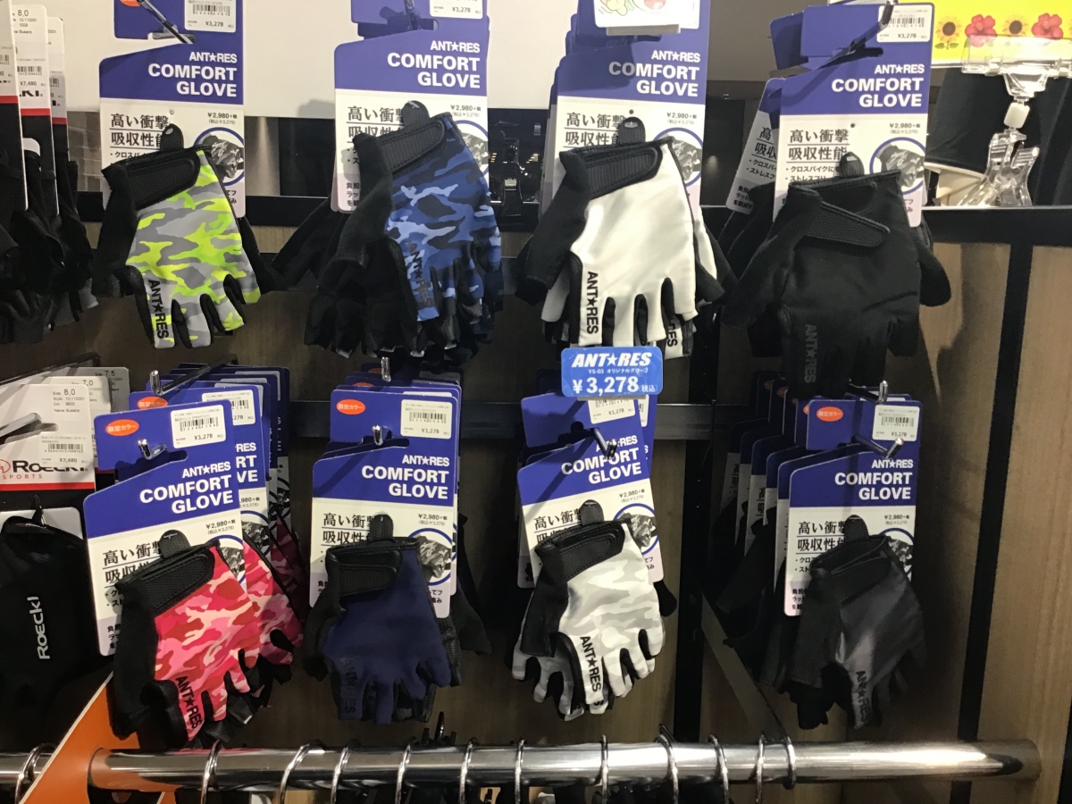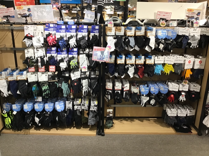 他にも沢山のグローブの在庫を揃えています。ロングライド向けにパッドがとても分厚く出来ている物もあれば、