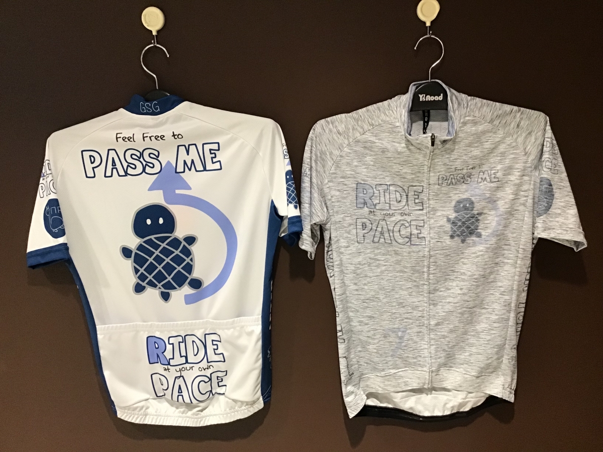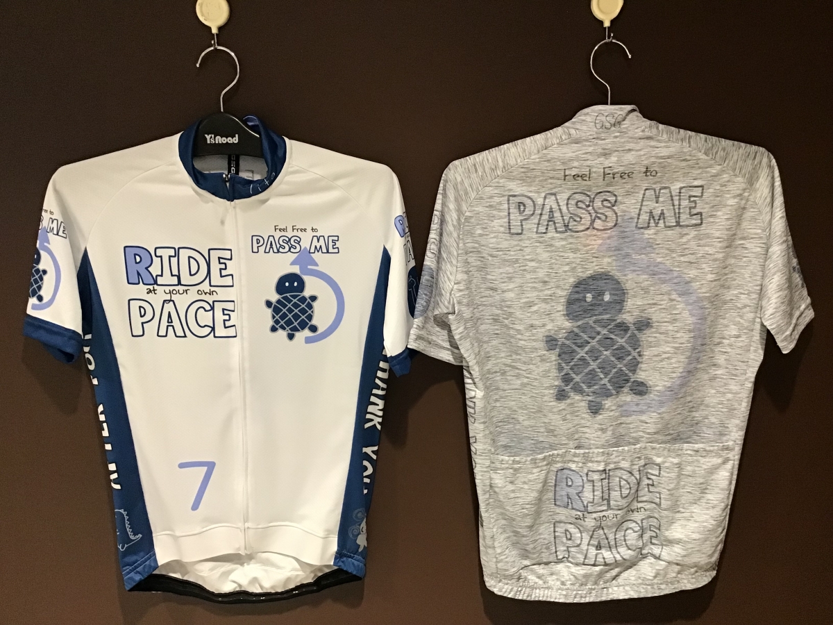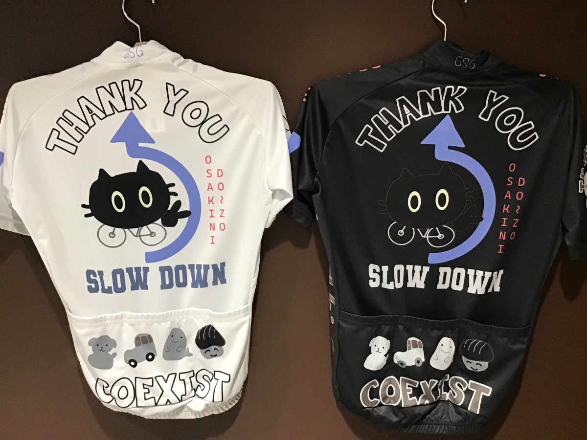スマイルマーク、ネコ、イヌ、サメなど他にはないデザインのサイクルウェアが勢ぞろいです‼
