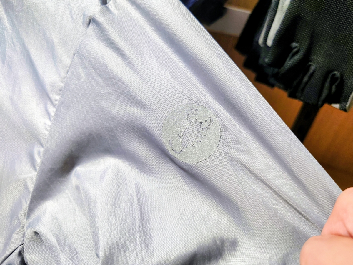 背面と左肩には視認性を高めるリフレクティブ・ロゴ。