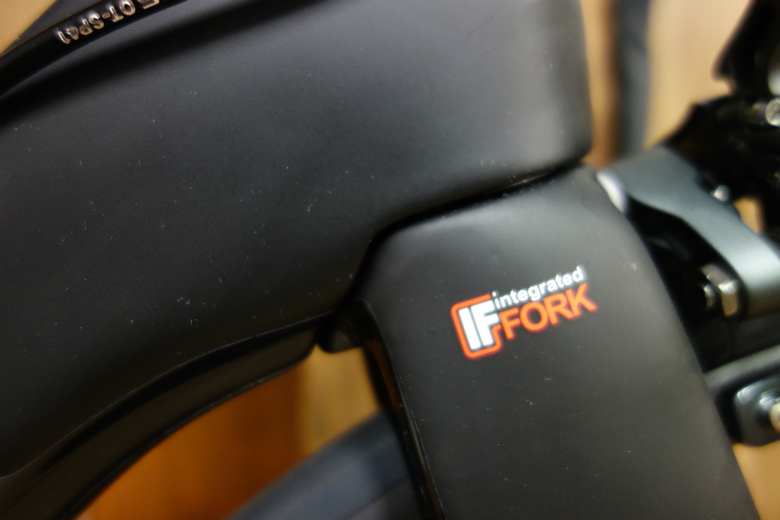 ヘッドチューブもかなり空力を意識したボリュームになっています。