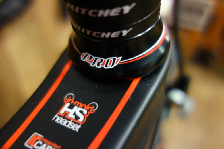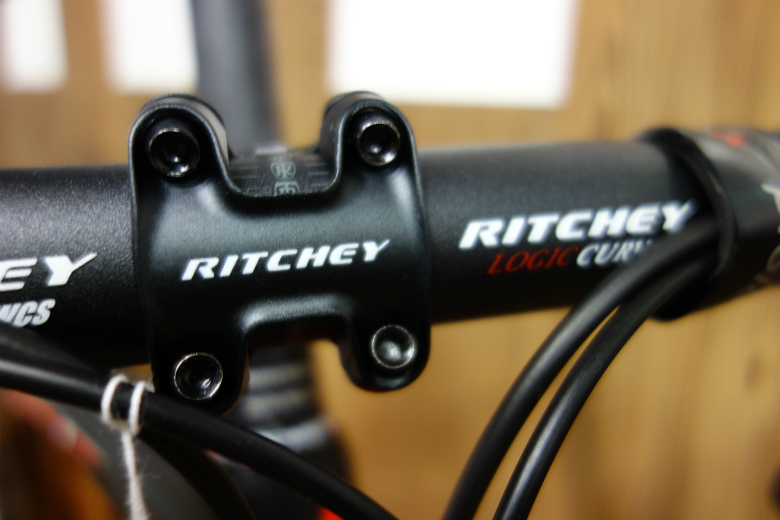 パーツはリッチーのハイエンドモデル。ステムは独特のクランプ方式ですがシュッとした面構えでカッコイイです。