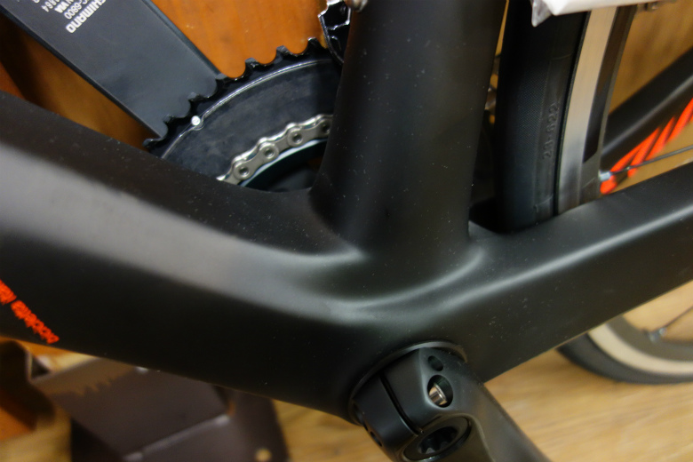 BB部分は現行最大規格のBB386でパワーを逃さず伝える大ボリュームを誇っています。