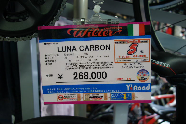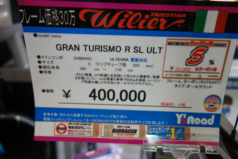 これ以外にも当店ではWILIERを10台以上在庫中。ワイズロードでも屈指の在庫量となっています。