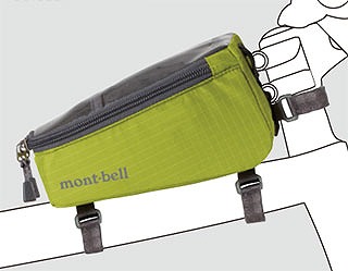 トップチューブとコラムに装着する上部にスマホなど収納可能なポケット付きのポーチ。