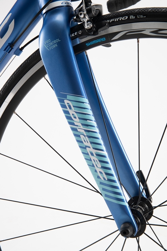 ハンドリングを司るフロントフォークにはカーボンを使用しています。太く迫力ある見た目からは裏腹に振動吸収性に優れていて、長時間に及ぶロングライドでも疲れを低減してくれます。また、程よい剛性により、ハンドリングの安定感も持ち合わせます。