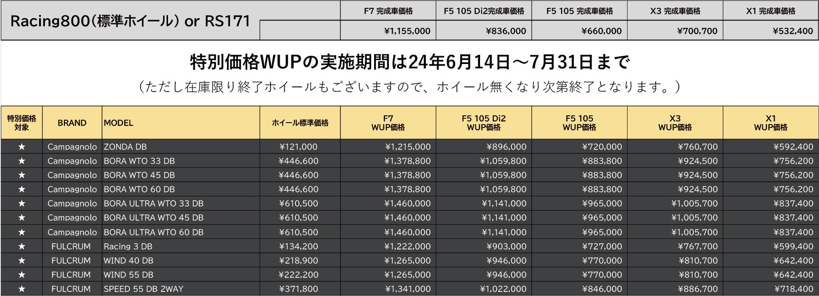 ・X3 105 Di2 Racing800 完成車 / ¥700,700-