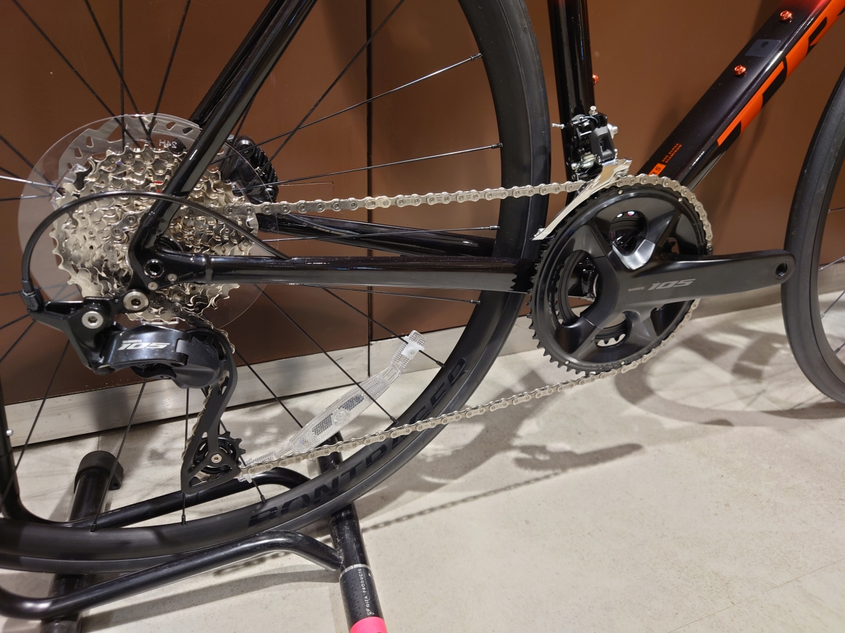 メインコンポーネントはSHIMANO 105 12速を搭載。最新世代の12速対応で、今後のアップグレードもしやすいコンポーネントです。