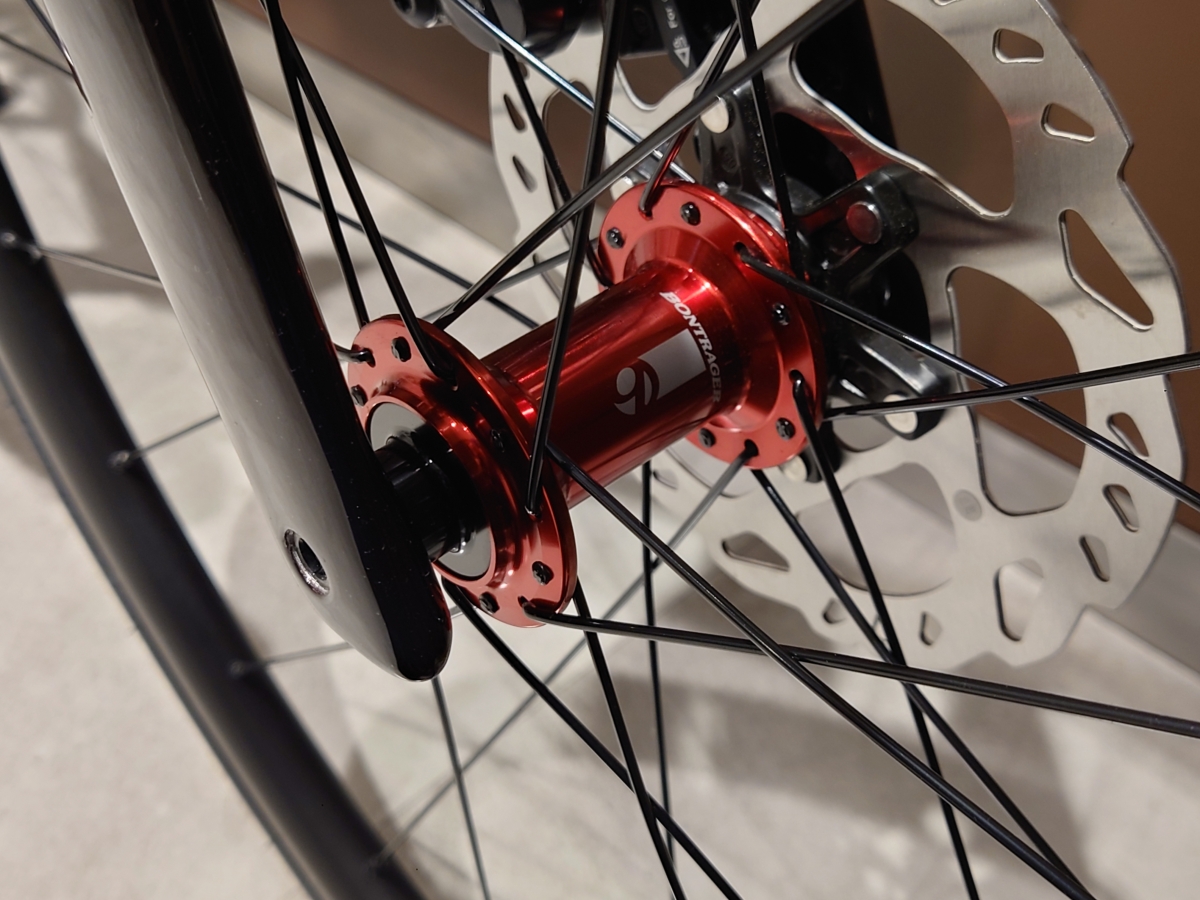 塗装はグラデーションになっており、下半分がブラックで上に行くにつれてワインレッドに変化しています。ホイールのハブも赤くしているのがこだわりが感じられていいですね。