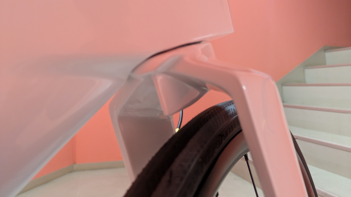 タイムトライアルバイクとしても優秀な一台になります。とくに目をひくワイドなクリアランスのフロントフォークは中にシャークフィンと呼ばれるハネが設けてあります。まるでレーシングカーのような設計ですが、それもそのはず。SPEEDMACHINEはF1の車体制作で活躍しているレッドブル・アドバンスド・テクノロジーズとの共同開発が行われたため、随所にそのような設計を確認することができます。最適化された空気力学はライダーのパフォーマンスをより一層高めてくれるでしょう。