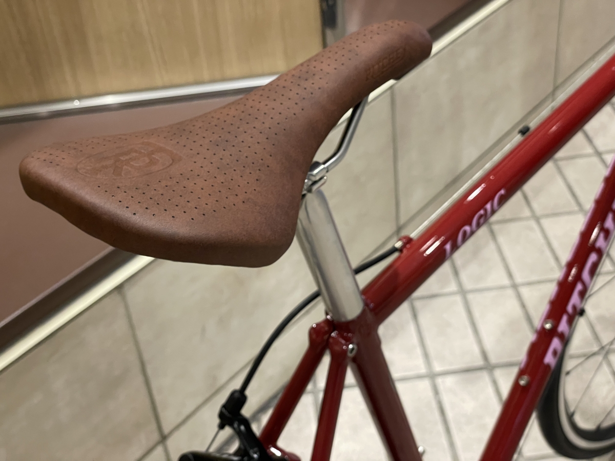 深いレッドに淡いピンクのロゴがとてもお洒落です。もちろん見た目だけではありません。クロモリフレームとしては軽量でロードバイクらしい軽快な走行感があり、さらに安定感と最大30Cタイヤクリアランスでオールロード的な使い方もできます。使い方の幅が広く使い方に合わせたカスタマイズが楽しめます。