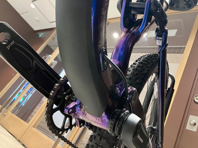 ダウンチューブ下や各部ステーにはプロテクターを装備しフレームへのダメージを最小限に抑えられるような工夫されていてBB周りにはチェーンデバイスの取り付け穴もございますのでハードなトレイルに挑戦される方でも安心の設計となっています。