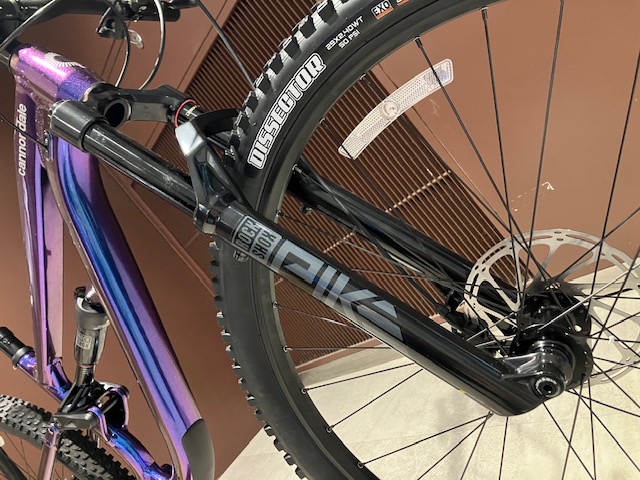 フロントサスはロックショックスのPIKE。140mmストロークのエアサスペンションで車軸はスタンダードなブースト規格を採用しております。