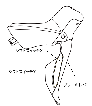 Di2 の大きな特徴として、すべてのシフトスイッチがブレーキレバーから独立していることが挙げられますが、シフトスイッチの位置関係はメカニカルシフトと共通しています。