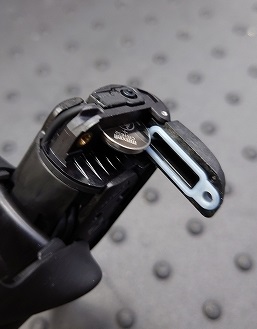 電池は CR1632 で電池の寿命は、約 1.5~2 年ほどです。ボタン電池はレバー先端のブラケットカバーをめくりあげた部分から交換可能です。SHIMANO は左右同時に交換を推奨しております。