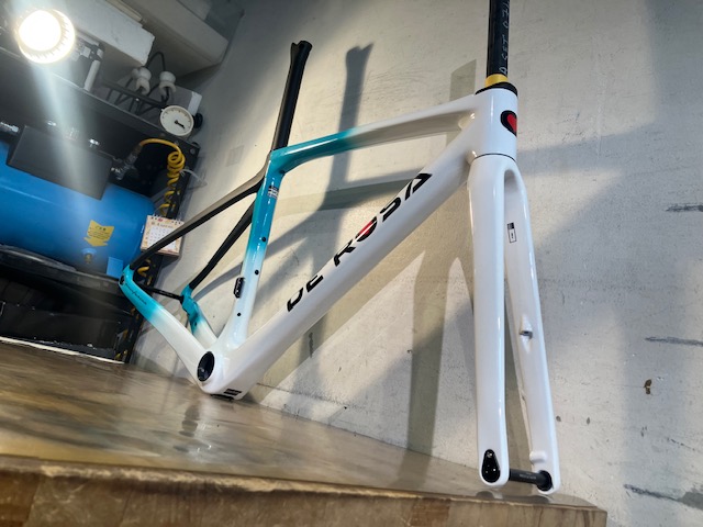 ヘッドチューブ下部からダウンチューブにかけてのラインも空力を強く意識した形状のMERAKと比較してスタンダードな形状に変更されています。