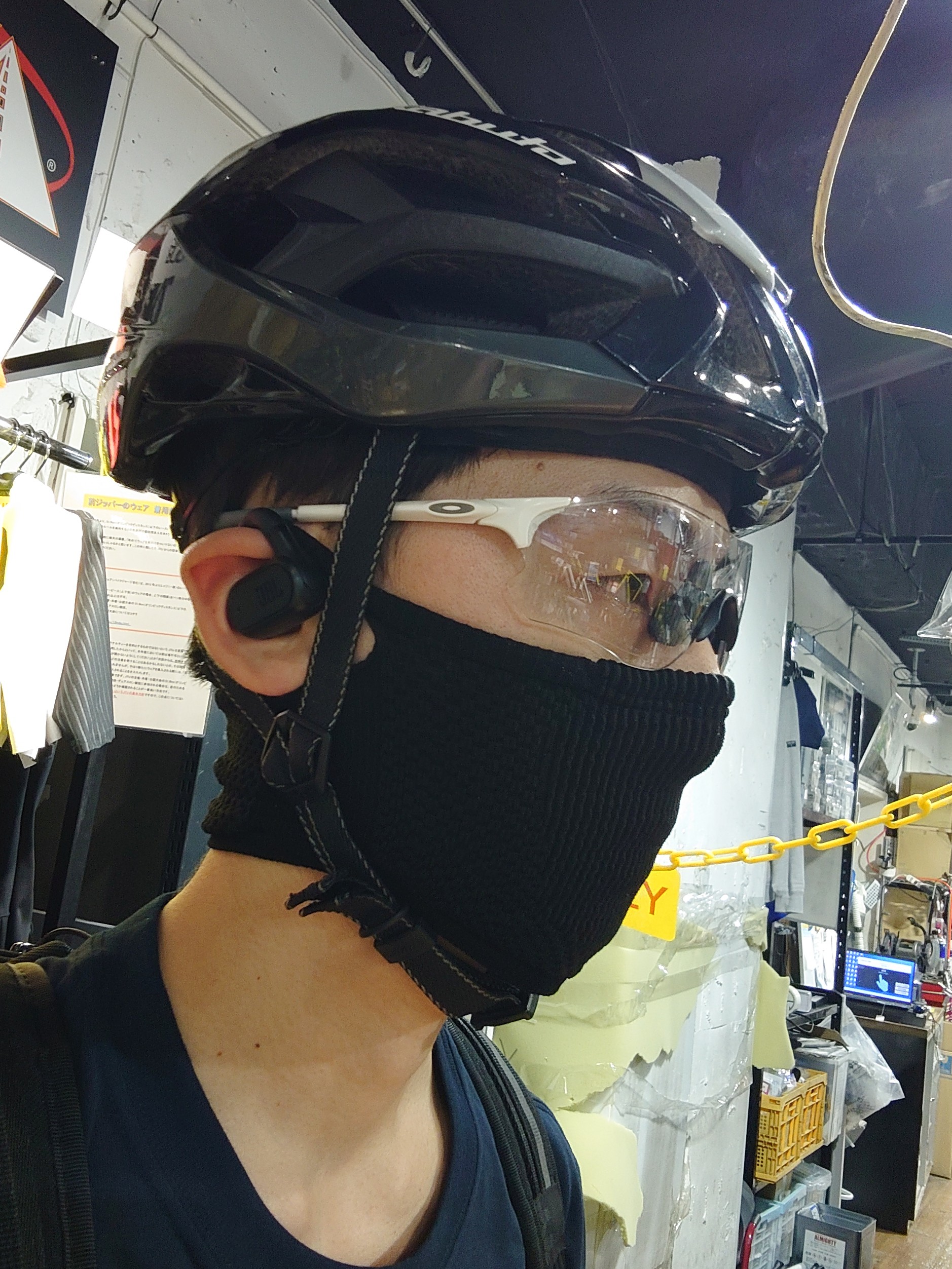 ヘルメット、アイウェア、骨伝導イヤホンと、てんこ盛りですが干渉することなく装着出来ました。
