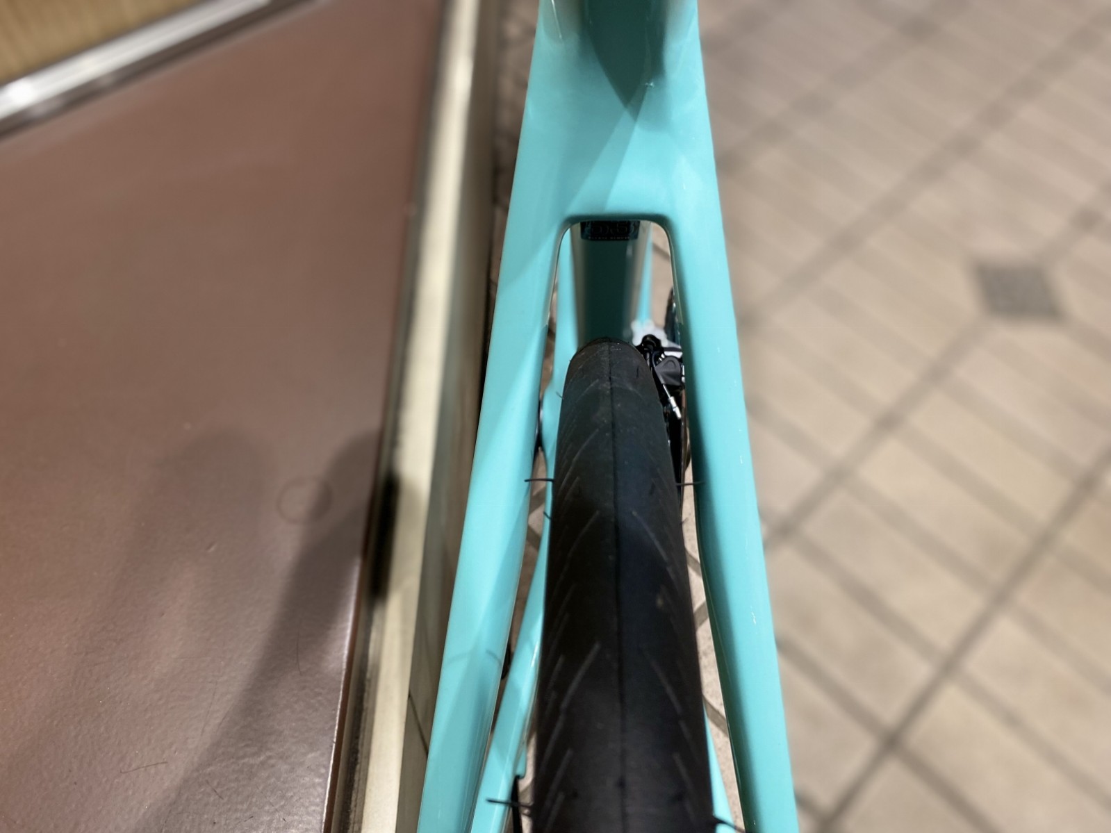 32mm幅のタイヤまで装着可能なフレーム設計。標準で32mmのタイヤが付属します。