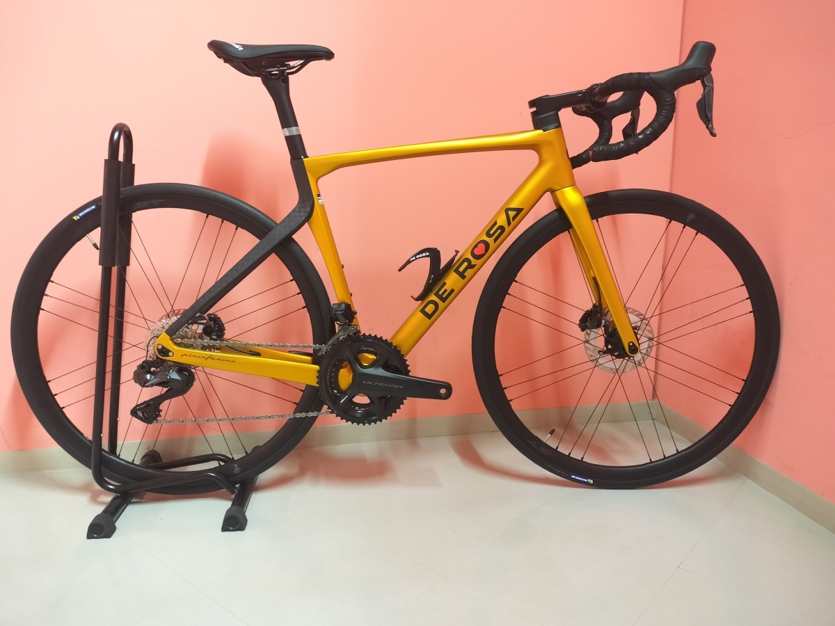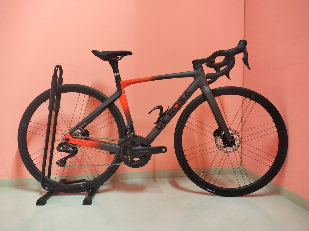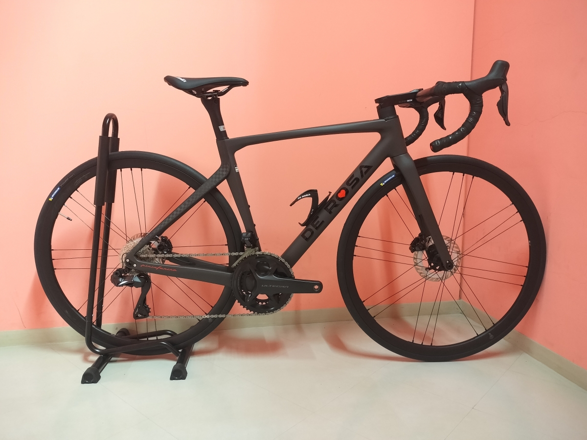 漕ぎ始めた瞬間から剛性の高さを感じることができます。しっかりとパワー受け止めてくれるのでどんな踏み方をしてもぐんぐん加速していってくれます。バイクの振りもクライミングバイクの様な軽さを感じるのですが、ヒラヒラ感はなく高速域でも安定した走りが可能でした。お店の近所しか試乗していないのであまり多くは語れないのですが、アルミホイールが付いているとは思えないほどの反応の良さです。まさにピュアレーシングバイクとはこのモデルの事を言っているのではないでしょうか。