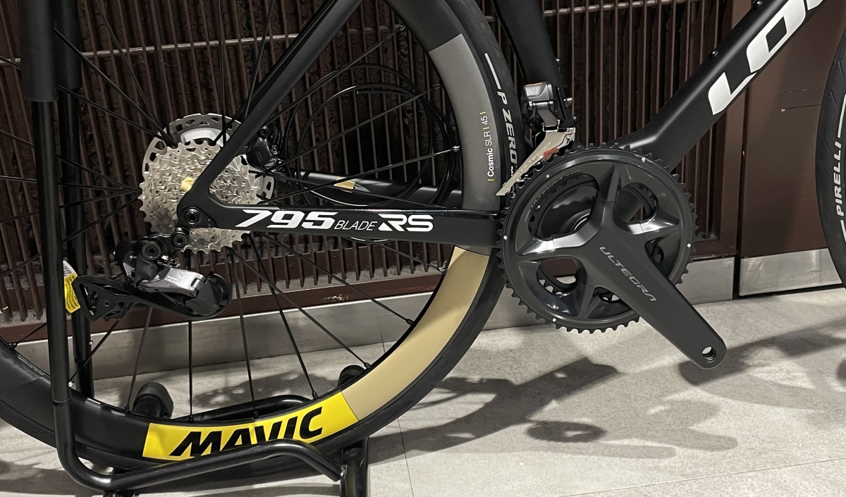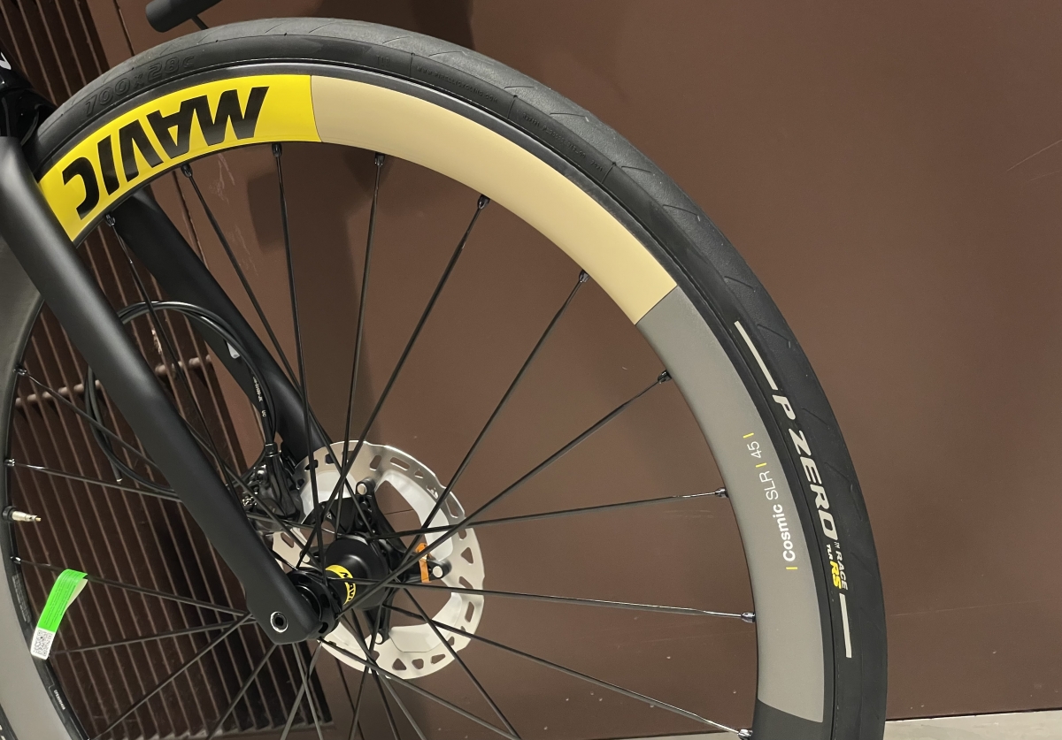 ホイールは新型のMAVIC COSMIC SLR 45!リムの内幅が23mmとなり性能がグッと上がっております。しかも日本限定200ペアの貴重なモデルです。