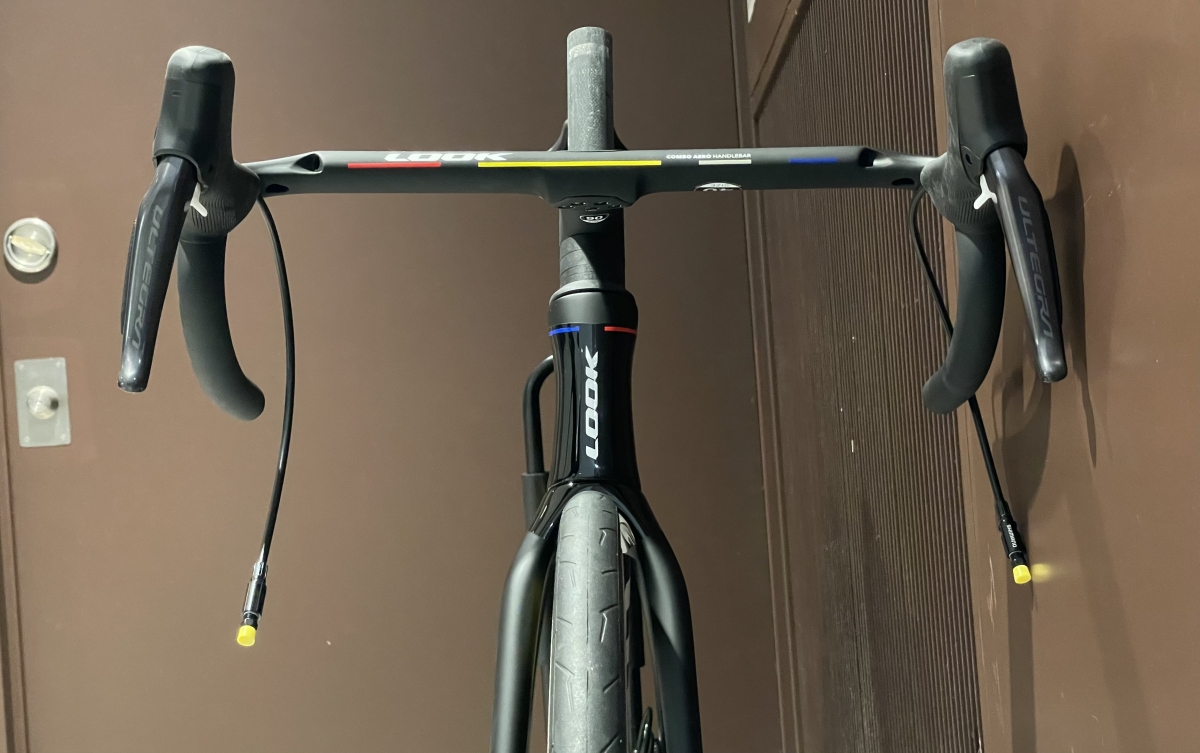 ハンドル・ステムはLOOKの純正品で芯-芯400mmでステム長は90mmとなっております。また一体型ではないのでポジションの調整も容易です。