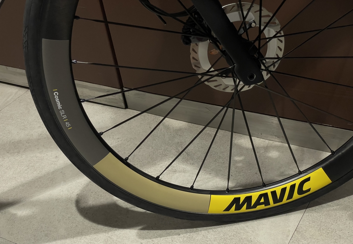 ホイールは新型のMAVIC COSMIC SLR 45!リムの内幅が23mmとなり性能がグッと上がっております。しかも日本限定200ペアの貴重なモデルです。