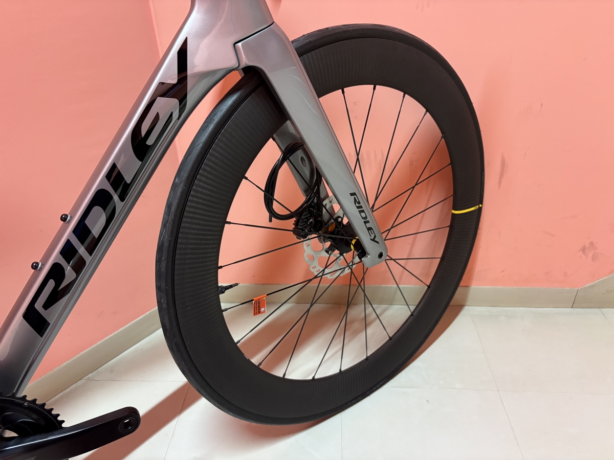 リドレーのエアロロードであるNOAHの新宿オリジナル完成車になります。ホイールには65mmのハイディープカーボンホイール、COSMIC SL65をインストールし、ビジュアルも迫力のあるエアロロードに仕上がりました。