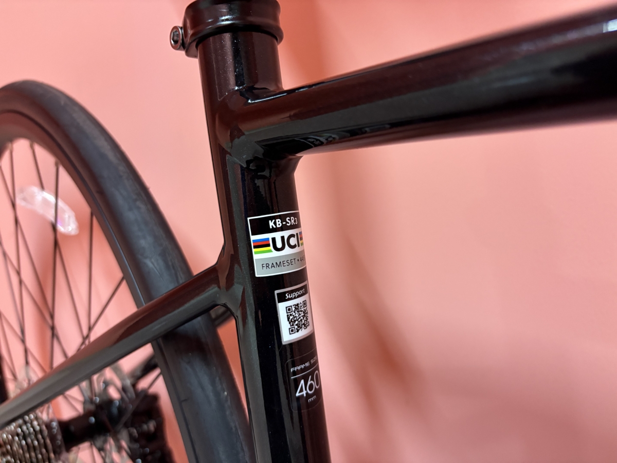 スタンダードなスペックのアルミレーシングバイクになります。シートチューブにはアルミバイクとしては珍しくUCI認証を受けた証明の印刷があり、国際基準のスペックを持ったアルミバイクとなっております。車体はオーソドックスなプロポーションとなっており、スレッド式のBBやシートポストなど汎用規格でまとめてあり、カスタムや修理などで困ることの少ない規格となっております。