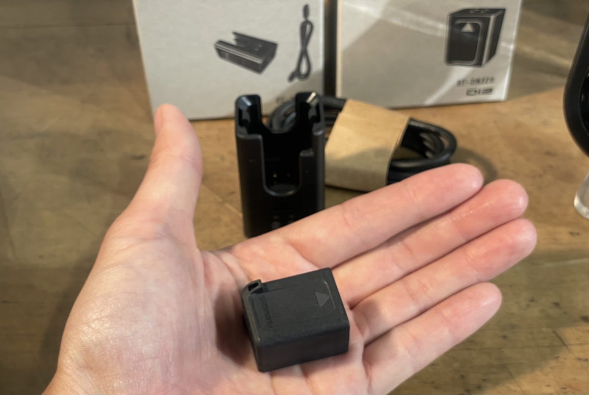 今回の新しいXTRは完全無線式なのでRDにバッテリーが付きます。かなり小さいバッテリーですね。別途バッテリチャージャーが必要です。