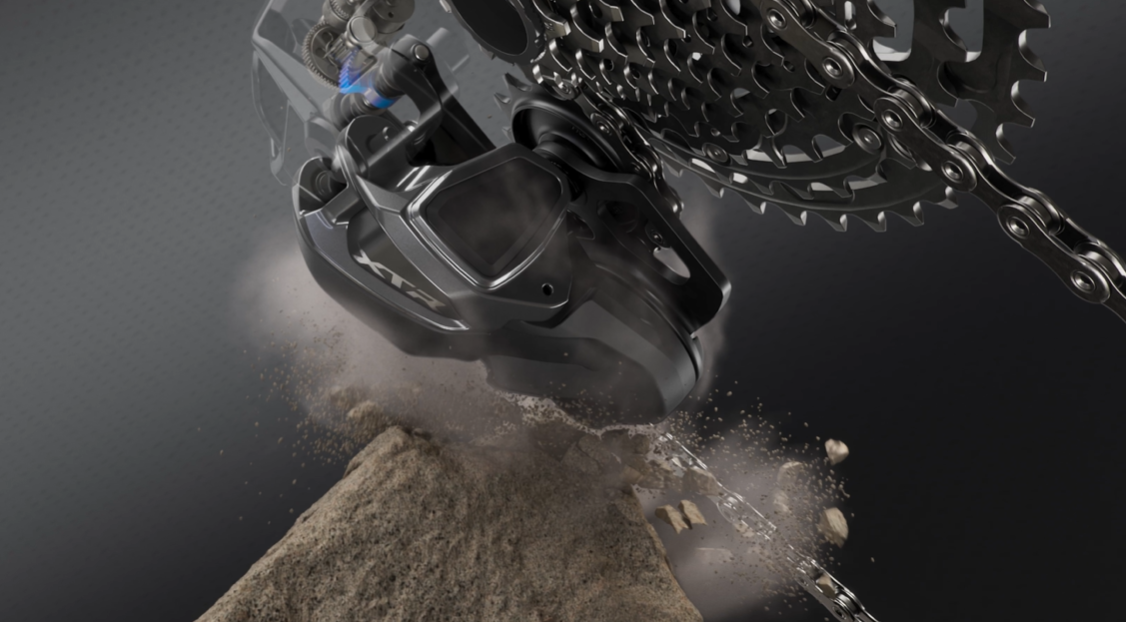 【SHIMANO SHADOW ES】による変速性能の向上や耐久性の向上はもちろんですが、個人的には【オートマチック・クラッシュリカバリー機能】が注目のポイントです。もしRDが岩にヒットしても即座にRDが元の位置に戻ってくれるので直ぐに走り出すことが可能です。疲労が溜まり余裕がなくなってきたときにこそ起きやすい状況です。実際にレースに出ていた時にRDをヒットさせて復帰に少し時間を取られてしまったことがあります。