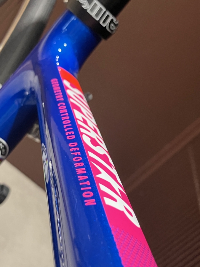 ブルーとピンクにポップなフォントを散りばめたチネリらしい遊び心溢れる外観と、軽快さ追求した質実剛健なフレーム設計にギャップ萌えする一台です。