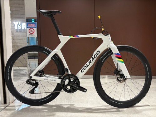 当モデルは既存レーシングモデルと比較して高速化するプロレースで更なるアドバンテージを獲得するために空力性能を限界まで高めたフレーム形状となっていて、V4Rs並びに過去のフラッグシップモデルで培ったコルナゴらしさはそのままに、新UCIルールに準拠した最新のトレンドとダブルYシェイプをはじめとした特徴的な設計を盛り込んだまさに新世代のエアロロードとなっています。
