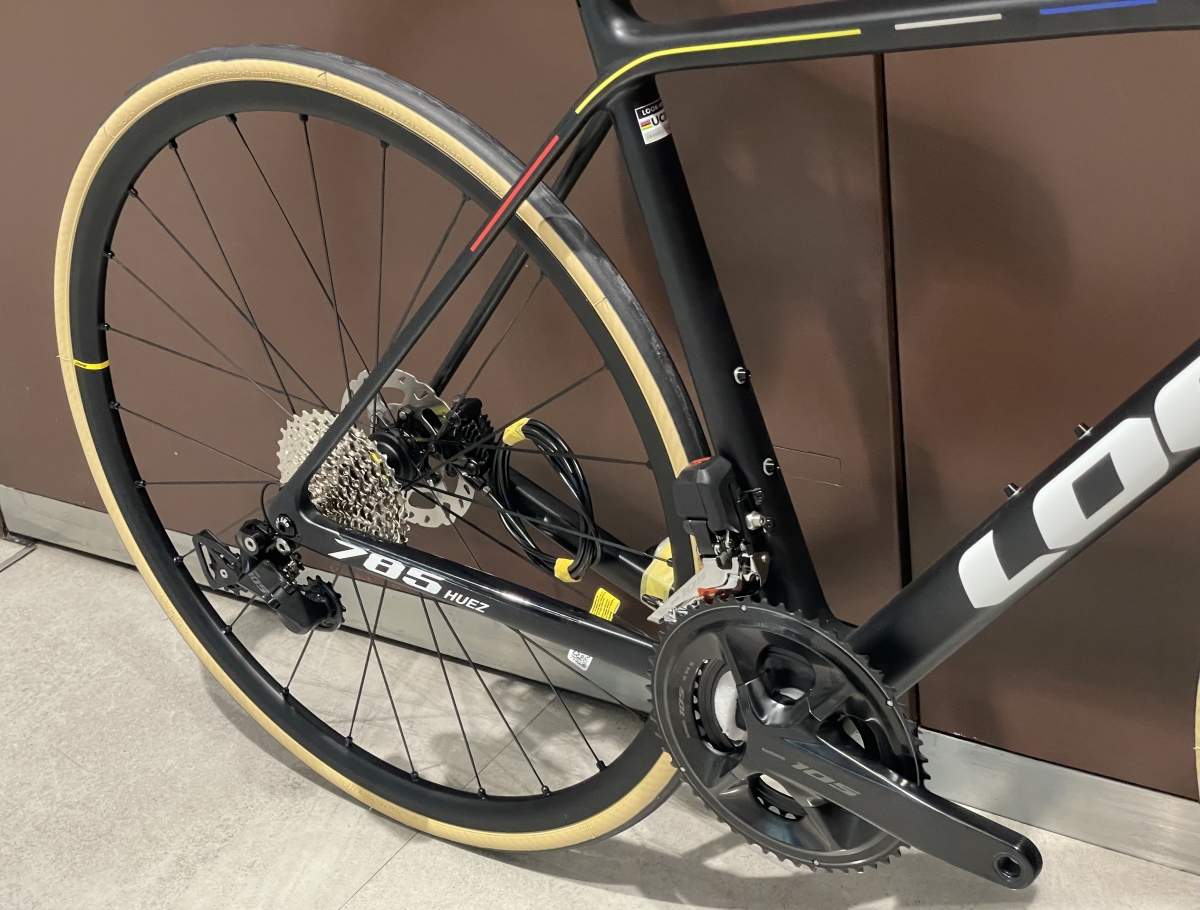 コンポーネントはShimano 105 Di2ですので変速も楽に確実にこなしてくれます。電動シフトに慣れてしまうともう機械式には戻れません。そのくらい楽なんです。