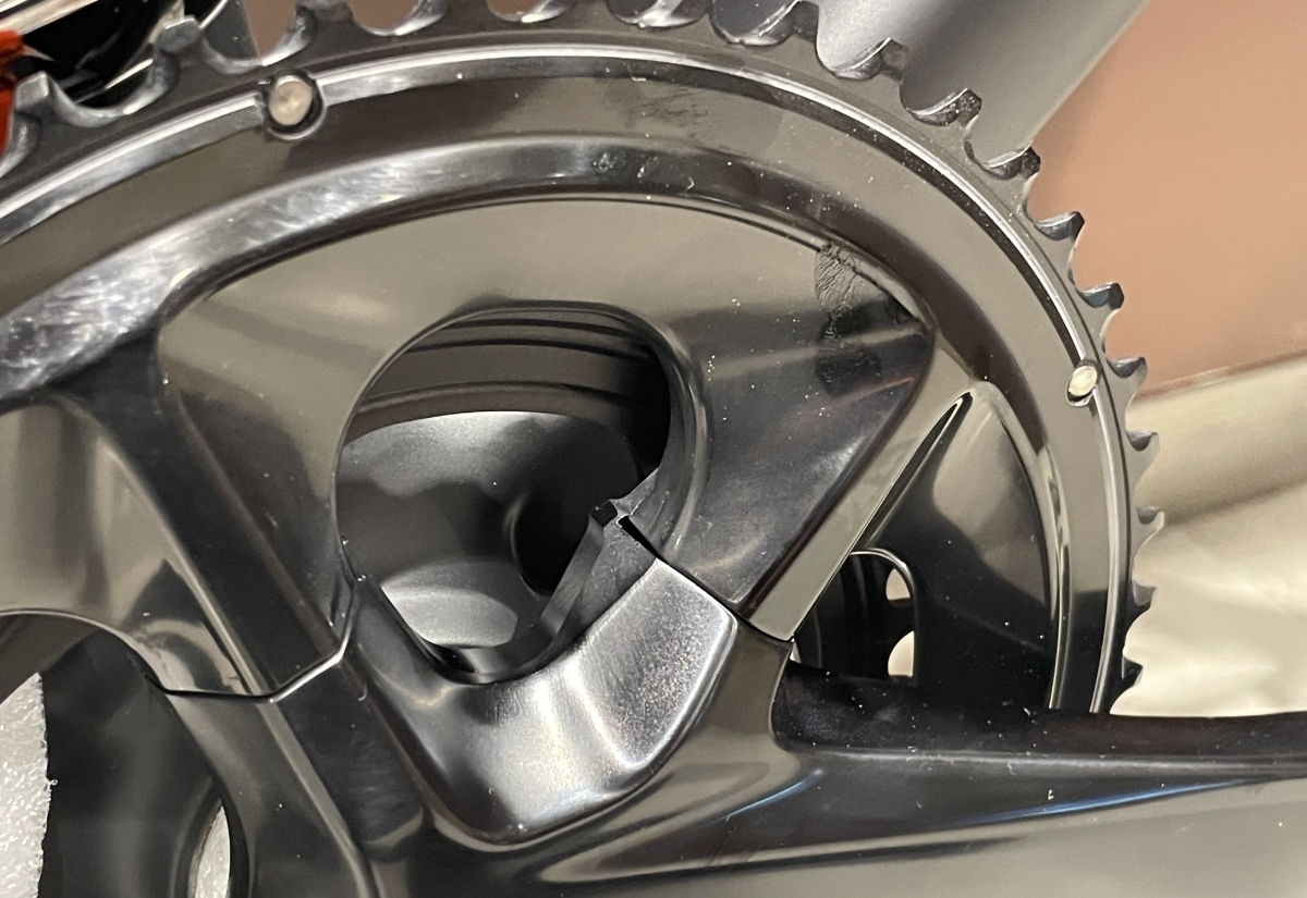 クランクの裏の部分にパワーメーター用のマグネット貼り付ける台座がフレームに設けてあります。