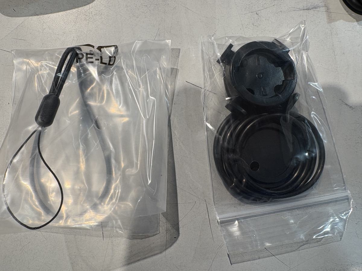 まずサイコンマウントに関しましては、ハンドルにゴムバンドで取り付けるタイプのものが付属します!別途でレックマウントなどをつけることにより、見た目をスッキリさせることが可能です!そして、転落防止ストラップです!やはり下りなど段差で不意にマウントからサイコンが外れてしまうことがございます。なのでストラップでハンドルとサイコンをストラップによってくっつけてあげることにより紛失、破損を防ぐことができます!最後に充電器ですがタイプCケーブルでの充電となりますので、タイプCケーブルが一本付属いたします!