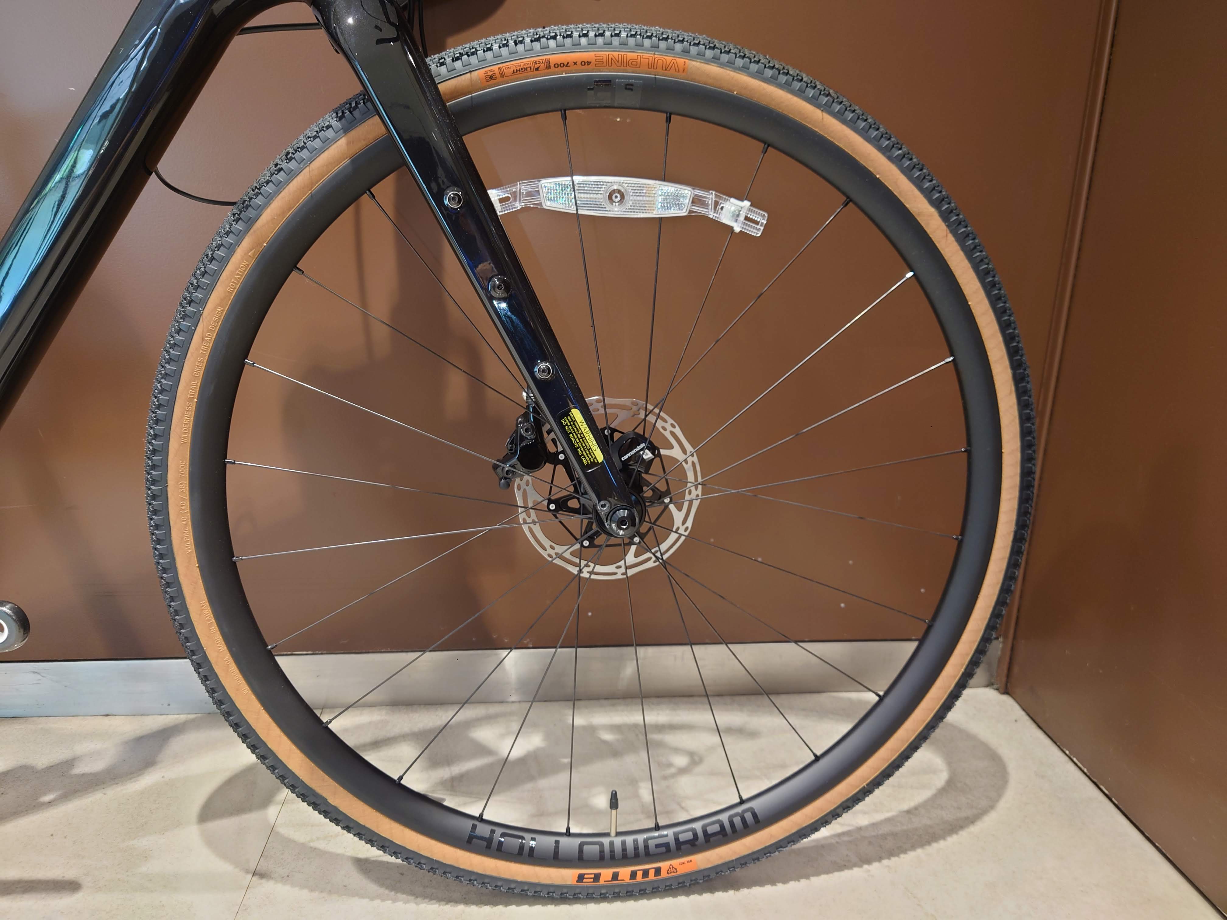 ホイールはHOLLOWGRAM G-SL 27を搭載。27mmのワイドなカーボンリムでワイドタイヤに対応しており、スムーズな乗り心地と高いトラクションが得られます。ハブの内部にはDT Swissのスターラチェットを使用しており、優れた回転性能とメンテナンス性を持ちます。