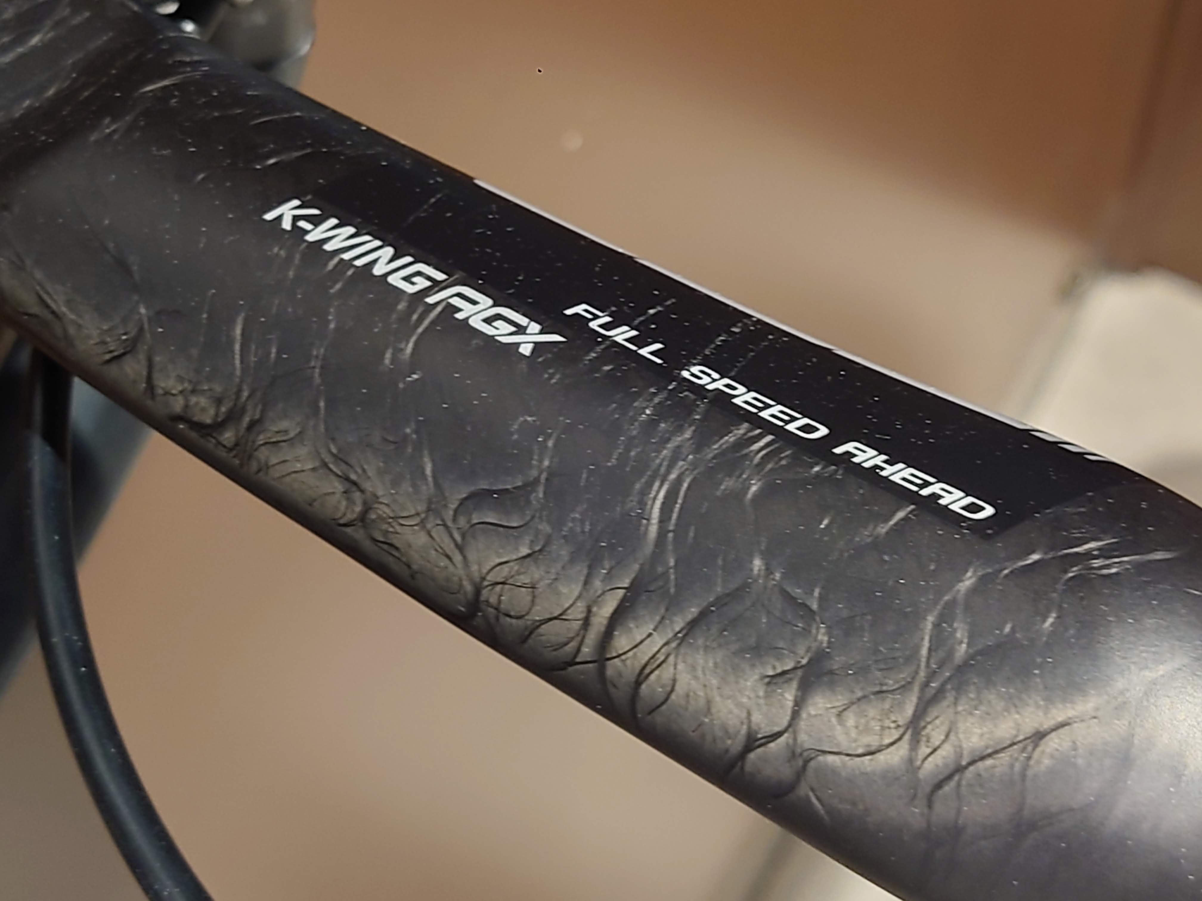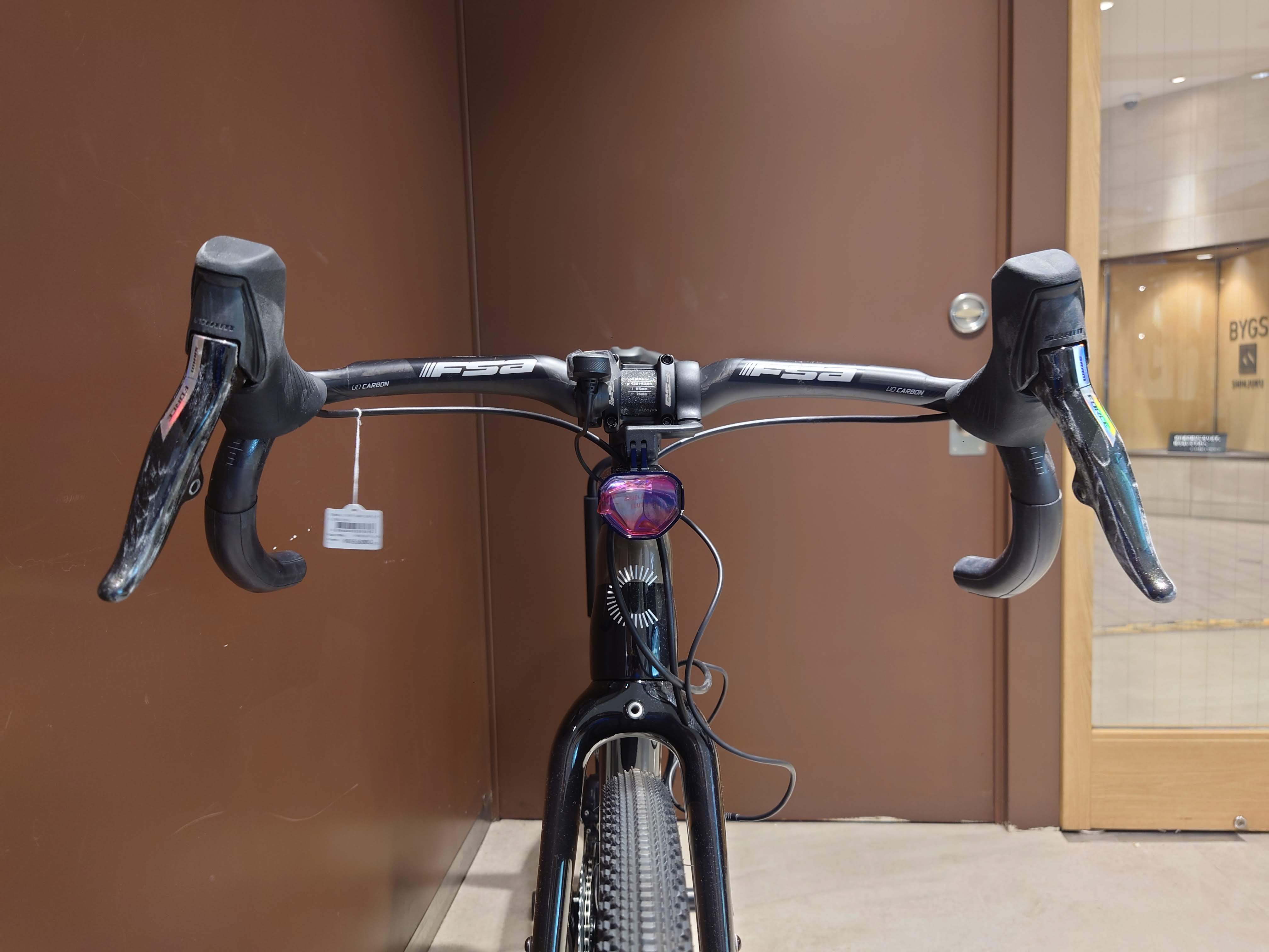 ハンドルはFSAのK-WINGを採用。高剛性のカーボンハンドルバーです。アドベンチャー、シクロクロス、グラベルロードでの使用に最適化されており、広いフレア角を持ちます。
