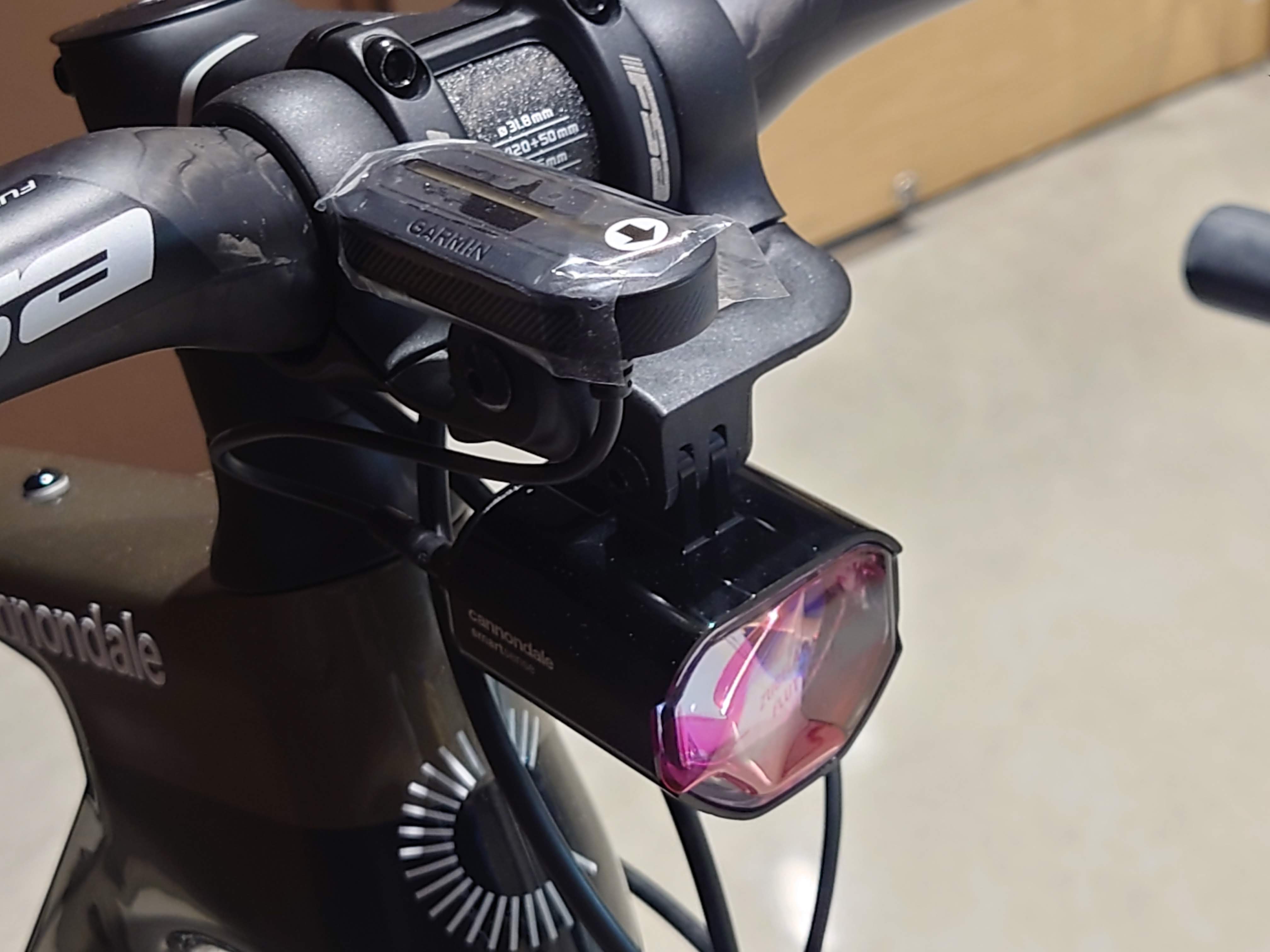 CANNONDALE 独自の機能、スマートセンスをフル装備しています。ホイールセンサーで自動で起動し、前後のライトを点灯。GARMIN性リアビューレーダーで後方からの車体の接近を検知。