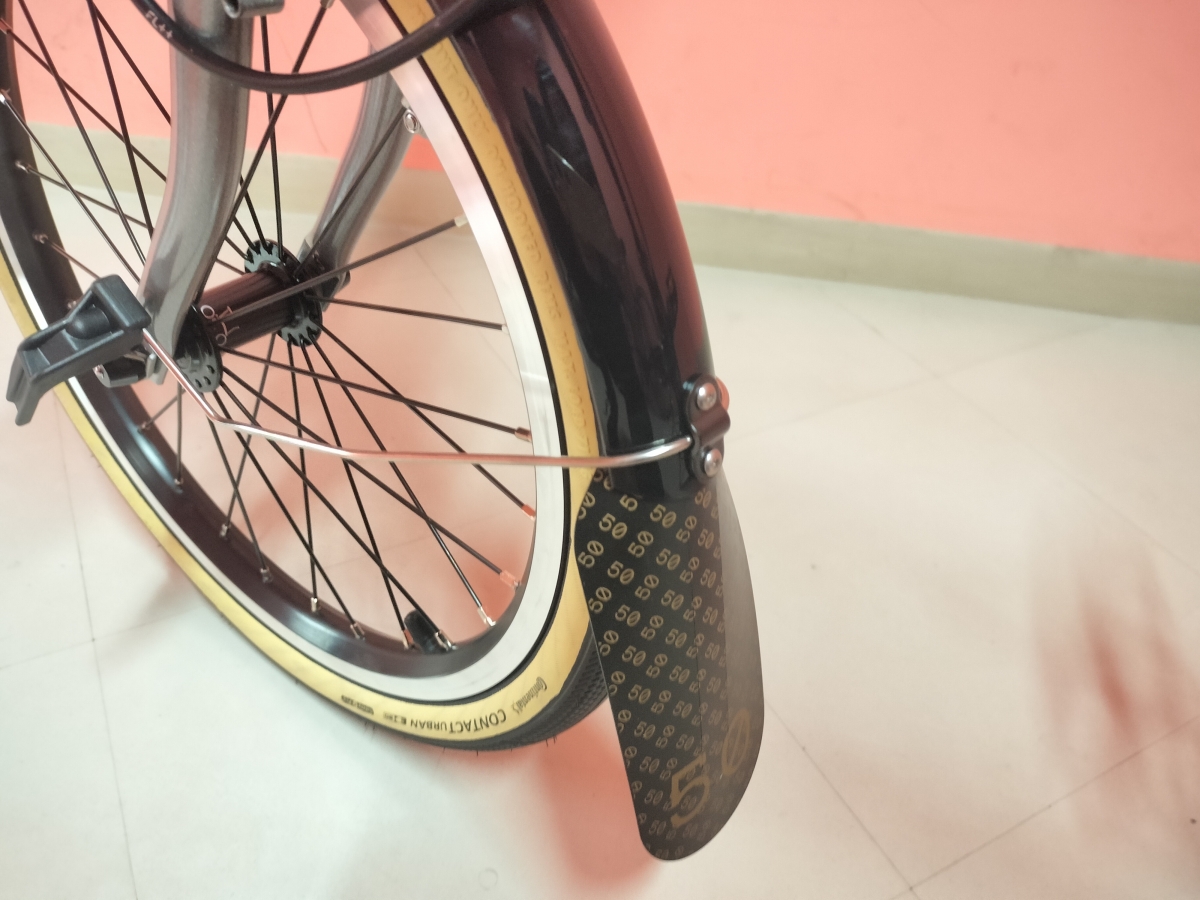 50 の文字が至る所に描かれておりフレーム、付属品、サドルと至る所に限定デザインが施されています。