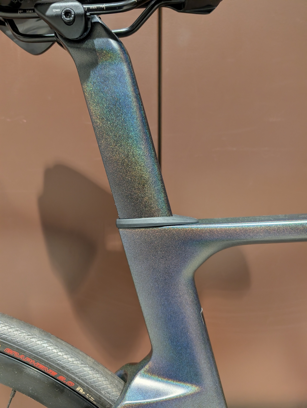 また見た目から高剛性の硬い乗り味という印象を受けますが、湾曲したシートステーやフレーム構造によ、衝撃吸収性に優れていて、エンデュランスロードのような乗り心地も魅力の一つです。